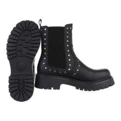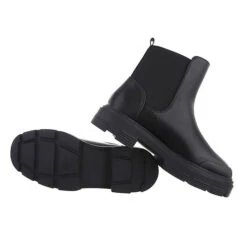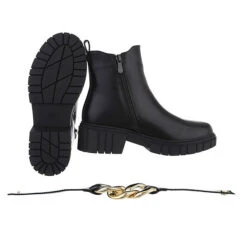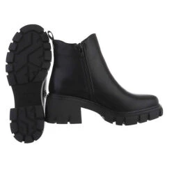 Plateaustiefeletten Reißverschluss, Blockabsatz, Riemen – Schwarz