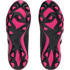 Diese praktischen Fußballschuhe von der Marke adidas eignen sich optimal für feste oder harte Böden und Kunstrasen. Die Schuhe sind mit einem Schnürverschluss versehen. Das Obermaterial zeigt sich als Materialmix aus Synthetik und Textil und ist robust sowie ansprechend.