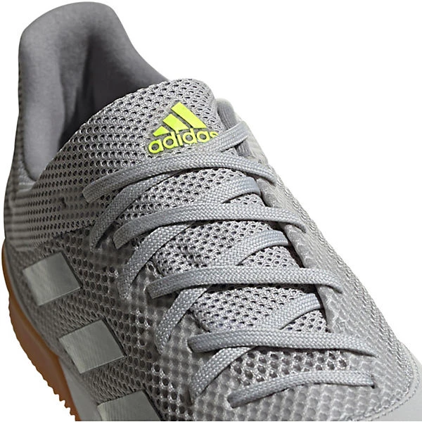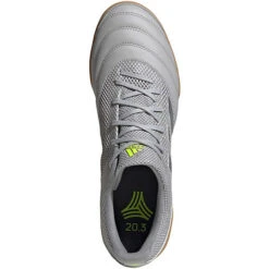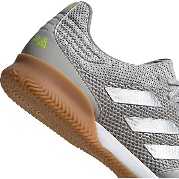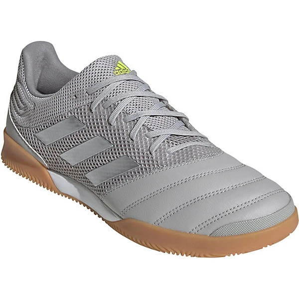 adidas COPA 20.3 IN SALA. Indoor-Fußballschuhe aus strapazierfähigem Kunstleder; Nahtdetails im Vorfußbereich für optimale Ballkontrolle; atmungsaktive Primemesh-Einsätze; dämpfender Fersenbereich; dämpfende EVA-Zwischensohle; Obermaterial aus Leder und Textil; Innensohle aus Textil; nicht abfärbende Außensohle.