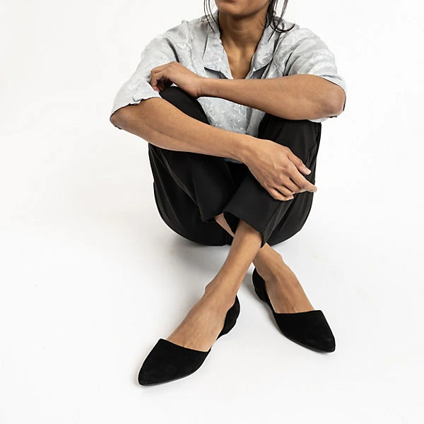 Die stylischen Ballerinas von Apple of Eden unterstreichen Ihren Look. Das Fußbett besteht aus natürlich atmungsaktivem Echtleder, das ein komfortables Trageerlebnis unterstützt. Das Obermaterial überzeugt durch das echte Wildleder. Es handelt sich um ein Schuhpaar zum schnellen Hineinschlüpfen.
