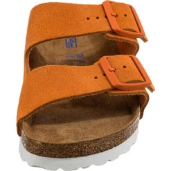 Die alltagstauglichen Pantoletten der Marke BIRKENSTOCK eignen sich gut für jeden Tag. Das Schuhpaar besteht aus Echtleder. Das Fußbett ist ergonomisch geformt, so dass der Fuß unterstützt und gefordert wird. Es handelt sich um ein Modell zum einfachen und schnellen Hineinschlüpfen.