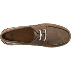 Die alltagstauglichen Bootsschuhe von BOSS eignen sich ideal zu vielen Gelegenheiten. Das Obermaterial zeichnet sich durch das feine, echte Rindsleder aus. Für ein angenehmeres Trageerlebnis besteht das Fußbett aus Echtleder. Durch den Schnürverschluss ist eine individuelle Anpassung möglich.