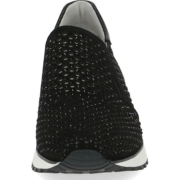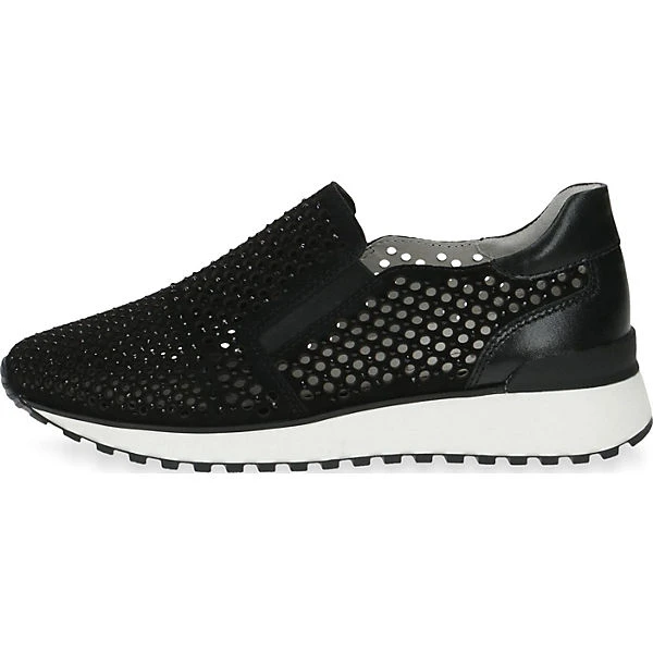 Perfekt zu vielen Anlässen: Die alltagstauglichen Slip-On-Sneaker der Marke CAPRICE. Es handelt sich um ein Modell zum einfachen Hineinschlüpfen. Das Fußbett besteht aus natürlich atmungsaktivem Echtleder, das ein komfortables Tragegefühl begünstigt. Diese Schuhe punkten dank des Obermaterials aus hochwertigem Leder.