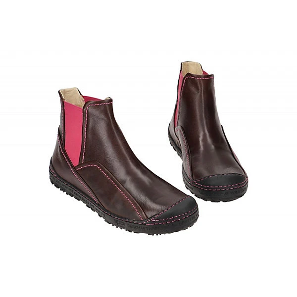 Hersteller: Eject Hersteller Art-Nr.: 20756.001 Modellname: DASS II Machart: Damen Stiefeletten – sportliche Stiefelette Farbe: dunkelbraun + pink + Sohle in schwarz (brown) Obermaterial: Echtleder – Glattleder Innenfutter: Echtleder – naturgegerbt Innensohle: Echtleder – naturgegerbt Wechselfußbett: Ja – herausnehmbare Innensohle Laufsohle: robuste Profil Gummisohle Verschluss: Gummizug – ohne Verstellmöglichkeit Absatzart: flach – kein Absatz Schuhform: rund Größenhinweis: fällt normal aus Weitenangabe: G – normal Weite
