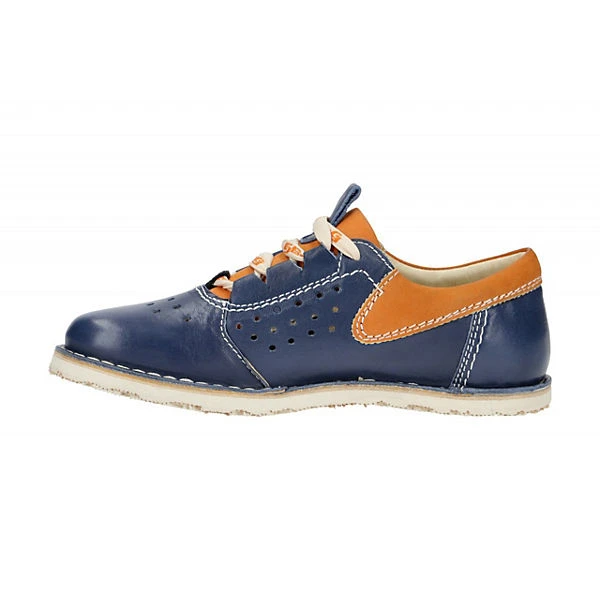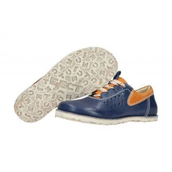 Hersteller: Eject Hersteller Art-Nr.: 20017.001 Modellname: SONY3DEAL Machart: Damenschuhe – sportliche Schnür- Halbschuhe Farbe: blau + orange + Nähte in weiß (blue / orange) Obermaterial: Glattleder + Velourleder Mix Innenfutter: Echtleder – naturgegerbt Innensohle: Echtleder – naturgegerbt Wechselfußbett: Ja – herausnehmbare Innensohle Laufsohle: Gummisohle, mit „Eject“ Buchstaben Muster Verschluss: 4fach Schnürung Absatzart: flach – kein Absatz Schuhform: rund Größenhinweis: fällt normal aus Weitenangabe: G – normal Weite