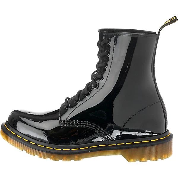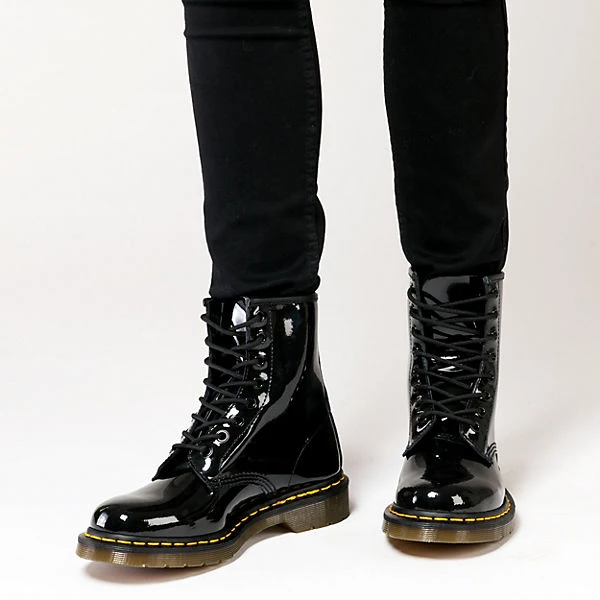 Immer kräftig und immer glanzvoll wird Ihr Auftritt in den 1460 Patent 8 Eye Stiefeletten von Dr. Martens. Der aufmerksamkeitsstarke Schuh im Stil eines Springerstiefels wird aus einem wirkungsvollen Lackleder gefertigt und überzeugt darüber hinaus mit der kräftigen Laufsohle aus Gummi. Hier setzt die feste Naht einen farbigen Akzent, der prima auch zur Lasche am hinteren oberen Schaft passt. Die weitläufige Schnürung schließt den starken Schuh. Für Komfort sorgt die Innenausstattung aus Leder vom Futter bis zur Decksohle. Eigenwillig in Stil und Optik sind das die Stiefeletten für echte Individualisten!