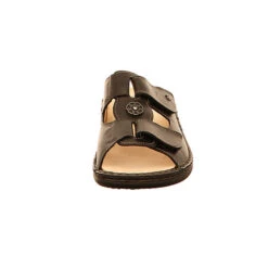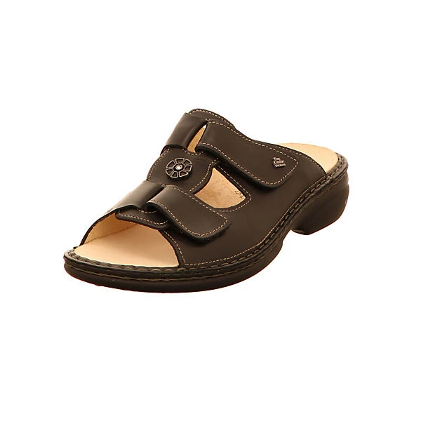 Damen Pantoletten von Finn Comfort aus einem feinen hochwertigem Glattleder. Innen ist der Schuh mit einem cromfrei gegerbtem Leder ausgestattet. Der Schuh verfügt über eine etwas breitere Weite. Der Absatz ist durchgehend flach. Die Laufsohle ist aus Gummi. Der Klettverschluss zum einfachen und bequemen an- und ausziehen sorgt für einen guten Halt.Ebenfalls ist eine stufenlose Anpassung an den Fuß möglich. Die Schuhgröße fällt regulär aus.