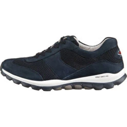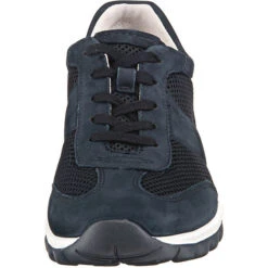 Gabor Damen Low Sneaker/ Schnürschuhe/ sportliche Halbschuhe Blau Leder-Textil-Mix – gepolsterte und herausnehmbare Decksohle – flexible, rutschhemmende Laufsohle – Obermaterial im Meshoptik – rollingsoft-sensitive Sohle – klassischer Schnürverschluss für optimale Anpassung