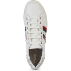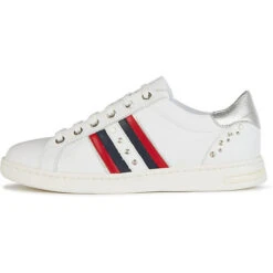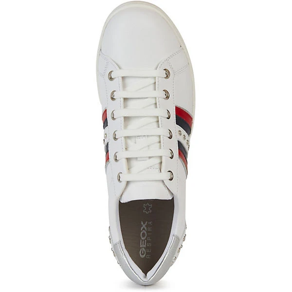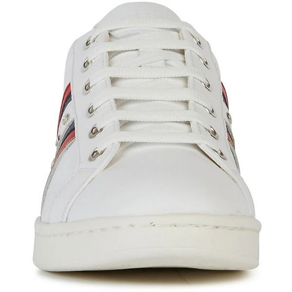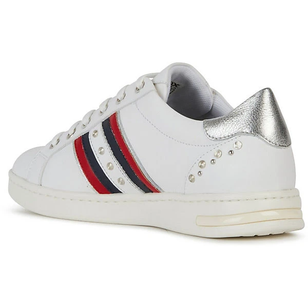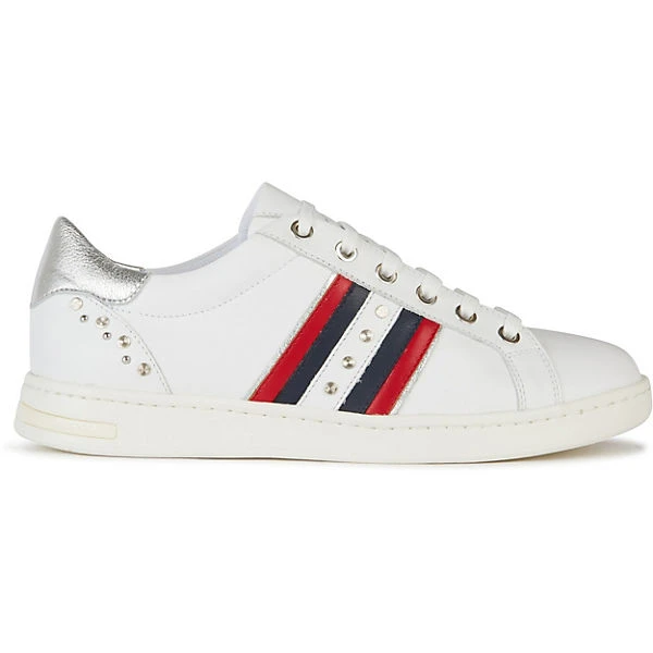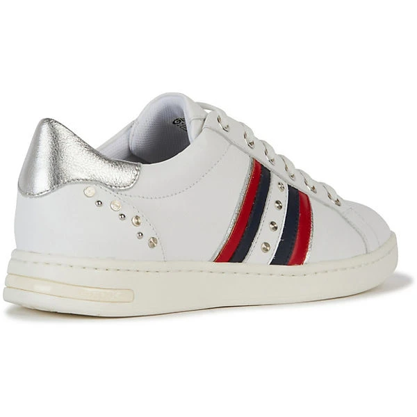 Bequemer und atmungsaktiver Low-Cut-Damensneaker in zeitloser Optik.Jaysen ist ein stets aktueller und vielseitiger Sneaker, der sich am klassischen Tennisschuh inspiriert. Er lässt sich leicht zu allen lässigen Outfits kombinieren. Das Obermaterial aus weißem Nappaleder erhält durch das Detail an der Ferse aus silberfarbenem Leder, den seitlichen Kontraststreifen und die dekorativen Nieten seine moderne Prägung.