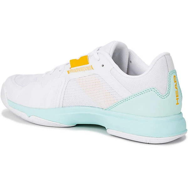 Besonders leichte Tennisschuhe für hohe Geschwindigkeiten auf dem Platz; Obermaterial aus atmungsaktivem Mesh und Synthetik; klassische Schnürung; belüftete TPU-Fersenkappe; diverse Labeldetails; EVA-Zwischensohle; Außensohle aus Gummi.