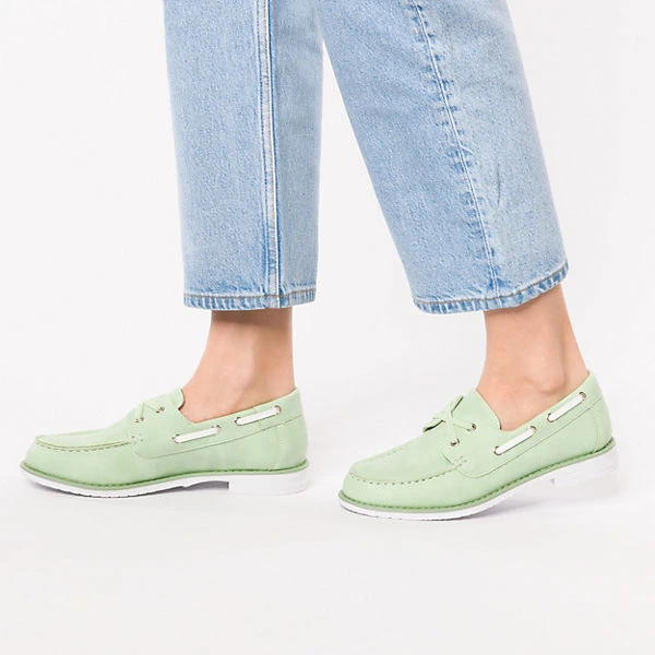 Auf Schritt und Tritt: Die Bootsschuhe der Marke Inselhauptstadt dürfen zu keiner Gelegenheit fehlen. Dieses Modell kommt ohne jeglichen Verschluss aus, sodass ganz bequem hineingeschlüpft werden kann.