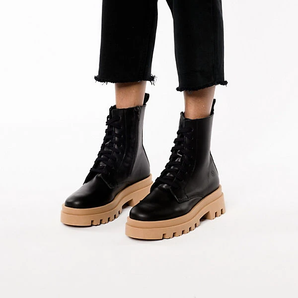 Vervollständigen viele unterschiedliche Outfits: Die modisch gestalteten Schnürstiefeletten der Marke JOLANA & FENENA. Eine gute Anpassung wird durch den Schnürverschluss ermöglicht, der darüber hinaus durch einen Reißverschluss ergänzt wird. Die Echtleder-Decksohle ist außerdem angenehm gepolstert. Das Obermaterial ist aus hochwertigem Echtleder.
