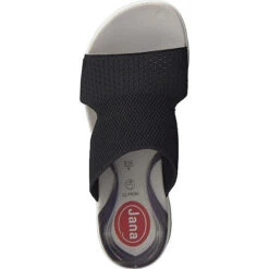 Aus dem Hause Jana: Diese praktischen Komfort-Pantoletten. Ein stilvoller Hingucker sind die Schuhe auch durch den imposanten Absatz. Das textile Obermaterial ergänzt den Look des Paares.