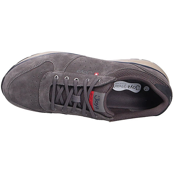 Für die comfort verwöhnten Männer ist das Modell DYNAMO CLASSIC M DARK GREY von JOYA mit einem hohen Tragecomfort genau das richtige. Besonders das weiche Veloursleder schmeichelt jedem, hat eine samtartige Oberfläche und ist sehr atmungsaktiv. Innen ist der Schuh mit einem elastischen sowie atmungsaktiven Textil augestattet. Die OrthoLite Support Einlegesohle ist sehr leicht und stark atmungsaktiv. Sie besteht aus einem PU-Schaum mit EVA-Verstärkung im Fersen- und Mittelfußbereich für zusätzliche Stabilität.Natürlich ist die Sohle herausnehm- und auswechselbar. Auf diesen Schuh freuen sich besonders etwas breitere Füße:Die Weite H bietet hier ausreichend Platz. Der Keilabsatz hat eine Höhe von cirka 1 cm ,die Sohlenkategorie emotion steht für Freude am Stehen und Gehen.Die weich-elastische Joya Sohle dämpft jeden Stoß ab und unterstützt dadurch effektiv die Entlastung von Rücken und Gelenken. Das Ergebnis: ein einzigartiger Gehkomfort. Ideal für Menschen, die sich und ihre Füße mit einem einzigartig weichen Geh-Gefühl verwöhnen wollen.Kennzeichen der emotion-AIR Technologie ist die besonders breite Sohle im Fersen- und Vorfußbereich um Weichheit mit Stabilität optimal zu kombinieren. Wichtig ist diese Stabilität vor allem im Arbeits- und Outdoorbereich.Besonders geeignet für den sportiven Lifestyle und Anwendungsbereiche in Beruf und Freizeit wo die körperliche Entlastung beim Gehen und Stehen wichtig ist. Ein klassischer Schnürverschluss rundet das Design ab und gibt Ihnen die Möglichkeit, die Passform des Schuhs zu optimieren. Durch die runde Schuhspitze wirkt der Schuh dezent am Fuß und bietet genügend Platz für die Fußzehen. Die Schuhgröße fällt regulär aus.