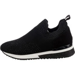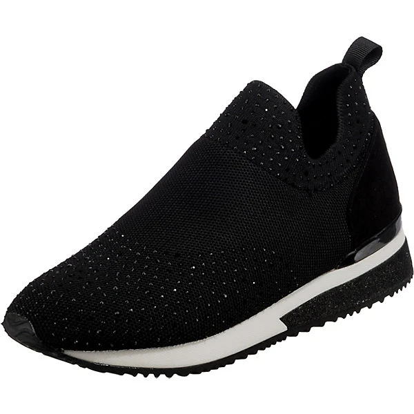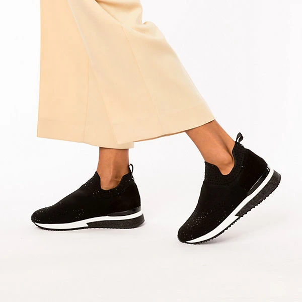 Auf Schritt und Tritt: Die Slip-On-Sneaker von der Marke La Strada© dürfen zu keiner Gelegenheit fehlen. Es handelt sich um ein Modell zum schnellen und einfachen Hineinschlüpfen. Der praktische Materialmix aus Synthetik und Textil im Obermaterial unterstreicht die Aufmachung dieses Schuhpaares.