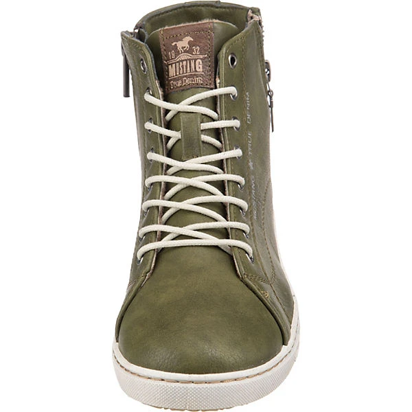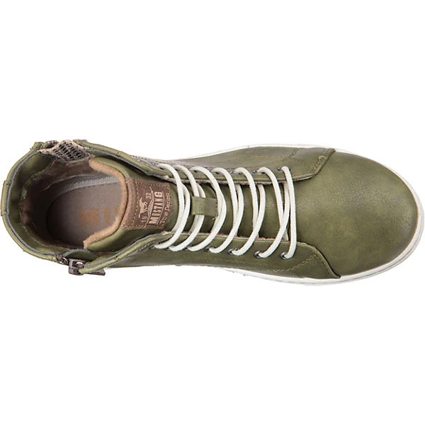 Die ansprechend gestalteten High Sneakers von der Marke MUSTANG eignen sich perfekt zu vielen Gelegenheiten. Das Futter aus Polyester ist angenehm anpassungsfähig. Der Schnürverschluss gewährleistet eine optimale Anpassung an den Fuß und wird darüber hinaus durch den Reißverschluss ergänzt. Die Oberfläche des Paares besteht aus Synthetik und sorgt für ein stimmiges Design.