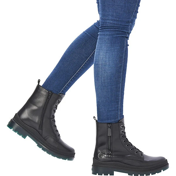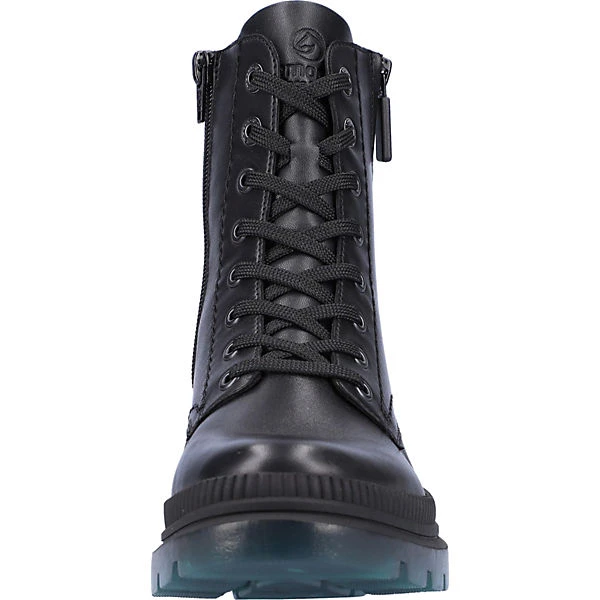 Ideal für jeden Tag: Die ansprechend gestalteten Winterstiefeletten von der Marke remonte. Mit besonders wärmenden sowie atmungsaktiven Eigenschaften besticht das Futter aus Schurwolle. Das Obermaterial ist aus Echtleder. Zusätzlich zum Schnürverschluss ist das Modell mit einem praktischen Reißverschluss versehen. Praktisch ist die bei Bedarf herausnehmbare Decksohle. Der Blockabsatz verbindet einen femininen Auftritt mit angenehmem Tragekomfort.