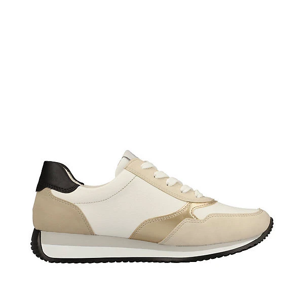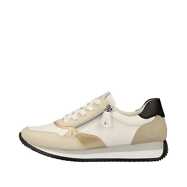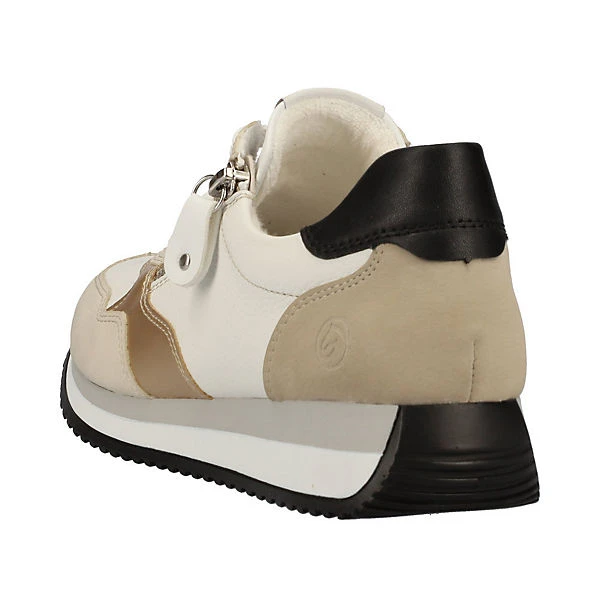 Ein Schuh für alle Fälle! Diese weiß-beigen remonte Sneaker aus Glattleder überzeugen modebewusste Frauen aber auch mit ihren tollen Features. Die clevere Kombination aus Schnürung und Reißverschluss gibt idealen Halt und ermöglicht ein einfaches An- und Ausziehen. Lite ´n Soft: Ein weiches Gefühl im Fußbett trifft auf eine ultra leichte Laufsohle. Die Sneaker sind mit einem atmungsaktiven Innenfutter aus Microvelour ausgestattet. Der Schuh ist optional auch bis zur Schuhgröße 45 erhältlich. Worauf warten?