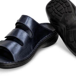 – PANTOLETTE Damen – modische Damen Sandale mit fester Sohle, leichtem Absatz und Klettverschluss, um die Weite indiviuell einzustellen, ermöglicht einen einfachen Einstieg