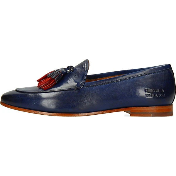 Ergänzen viele verschiedene Outfits: Die stilvoll gestalteten Loafers von der Marke MELVIN & HAMILTON. Die Leder-Laufsohle sorgt für ein ideales Klima. Diese Schuhe punkten dank des Obermaterials aus echtem Leder. Der dezente Blockabsatz unterstreicht den modischen Look. Das Fußbett besteht aus natürlich atmungsaktivem Echtleder, das ein angenehmes Tragegefühl begünstigt. Das Modell kommt ohne Verschluss aus, sodass ganz bequem hineingeschlüpft werden kann.