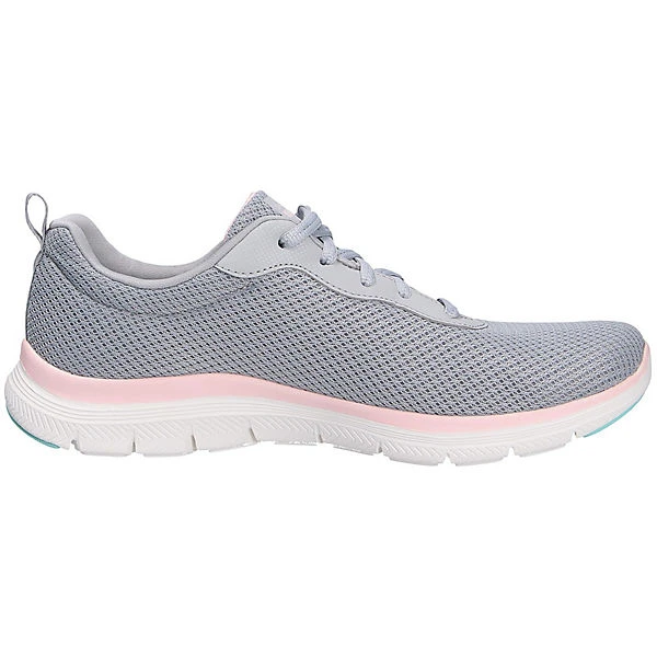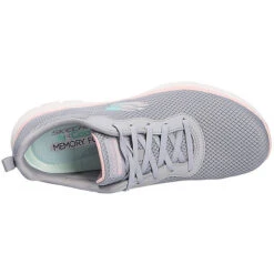 Sportiver Damenschnürschuh von Skechers aus einem feinen hochwertigem Synthetikmaterial. Innen ist der Schuh mit einem elastischen sowie atmungsaktiven Textil augestattet. Die weich gepolsterte textile Einlegesohle ist auswechselbar und schafft somit Platz für eigene Einlagen. Die Schuhform ist ideal für normal weite Füße (Weite F). Der Absatz ist durchgehend flach ,die aus einem weichen PU-Material bestehende Laufsohle schont die Gelenke und federt jeden Tritt optimal ab. Ein klassischer Schnürverschluss rundet das Design ab und gibt Ihnen die Möglichkeit, die Passform des Schuhs zu optimieren. Durch die runde Schuhspitze wirkt der Schuh dezent am Fuß und bietet genügend Platz für die Fußzehen. Die Schuhgröße fällt regulär aus.