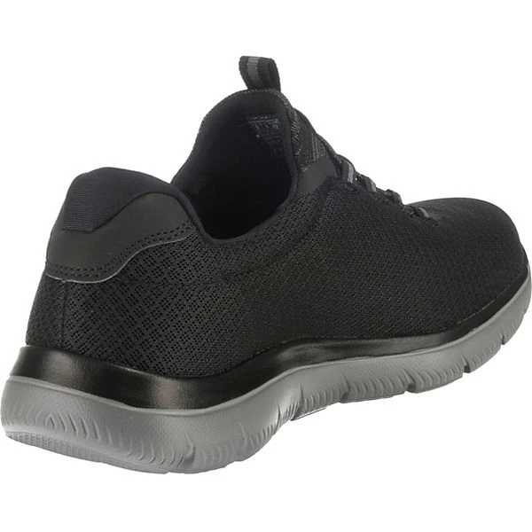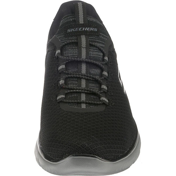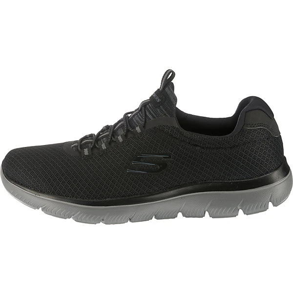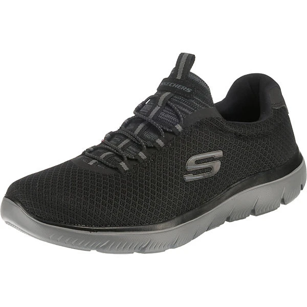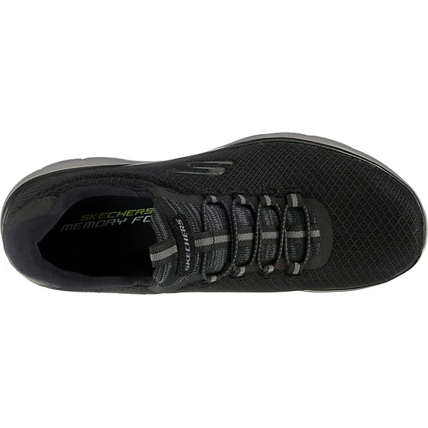 Skechers Herren Slip-On-Sneaker Summits Schwarz Textil – Memory Foam-Decksohle – gepolsterter Einstieg – Zuglasche – Elastikbänder – Logodetails – ultraleichte flexible Laufsohle