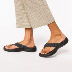 – Badepantoletten in klassischem Schwarz der Marke Skechers für Herren – der Synthetikriemen hat einen Klettverschluss für bessere Anpassung – ein schnell trocknendes weiches Fußbett für ein angenehmes Tragegefühl