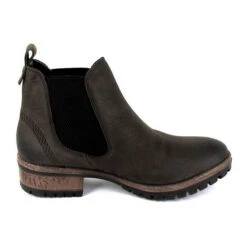 – robuster Chelsea Boot für Damen in der Farbe Braun – Obermaterial aus hochwertigem Leder – leichter Einstieg durch die seitlichen Gummizüge – rutschhemmende Sohle
