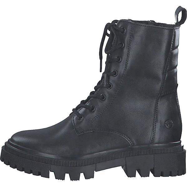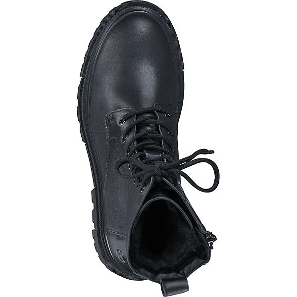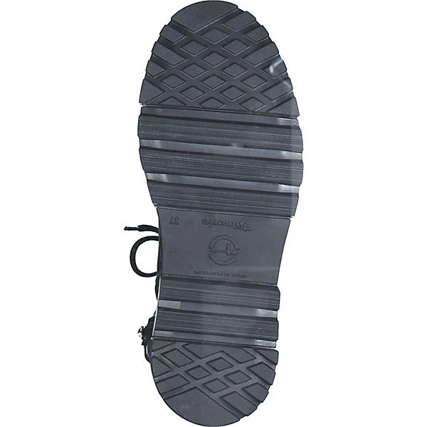 Die praktischen Winterstiefeletten von der Marke Tamaris eignen sich ideal zu vielen verschiedenen Gelegenheiten. Das Modell ist aus Echtleder. Dieser Schuh schließt per Reißverschluss. Der bequeme Blockabsatz bietet einen modischen Auftritt. Mit wärmenden sowie feuchtigkeitsausgleichenden Merkmalen punktet das Woll-Futter.