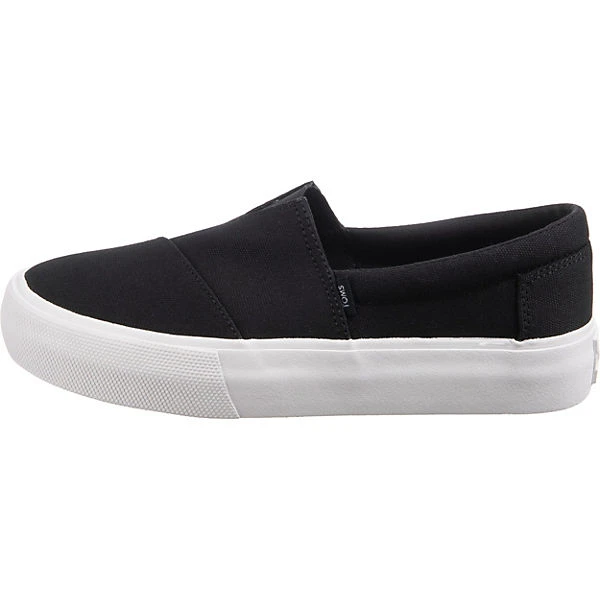 Toll zu vielen verschiedenen Anlässen: Diese ansprechenden Slip-On-Sneaker der Marke TOMS. Das Plateau setzt außerdem einen auffälligen Vintage-Akzent. Das Obermaterial aus Canvas gibt dem Modell einen besonderen Look. In die Schuhe kann ganz einfach hineingeschlüpft werden.