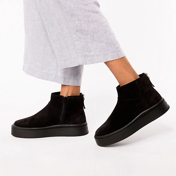 Toll zu vielen Anlässen: Die alltagstauglichen Winterstiefeletten von VAGABOND. Für eine verbesserte Umweltfreundlichkeit besteht die Decksohle aus wiederaufbereiteten Fasern. Das Obermaterial ist aus echtem Rindsleder.