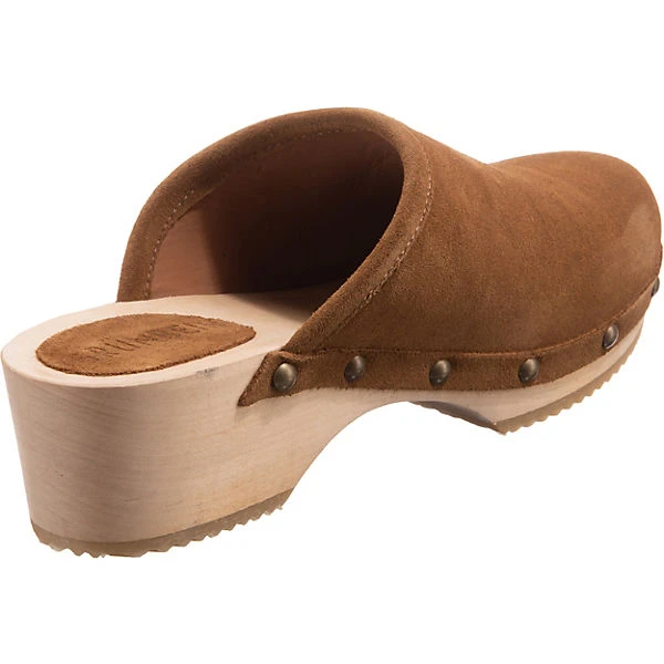 Von der Marke GRÜNBEIN kommen die praktischen Clogs. Der auffällige Blockabsatz beeindruckt durch die beachtliche Höhe. Das Schuhpaar kommt ohne Verschluss aus, sodass im Handumdrehen hineingeschlüpft werden kann. Das Obermaterial zeichnet sich durch das feine, echte Leder aus.